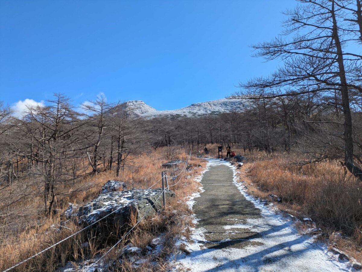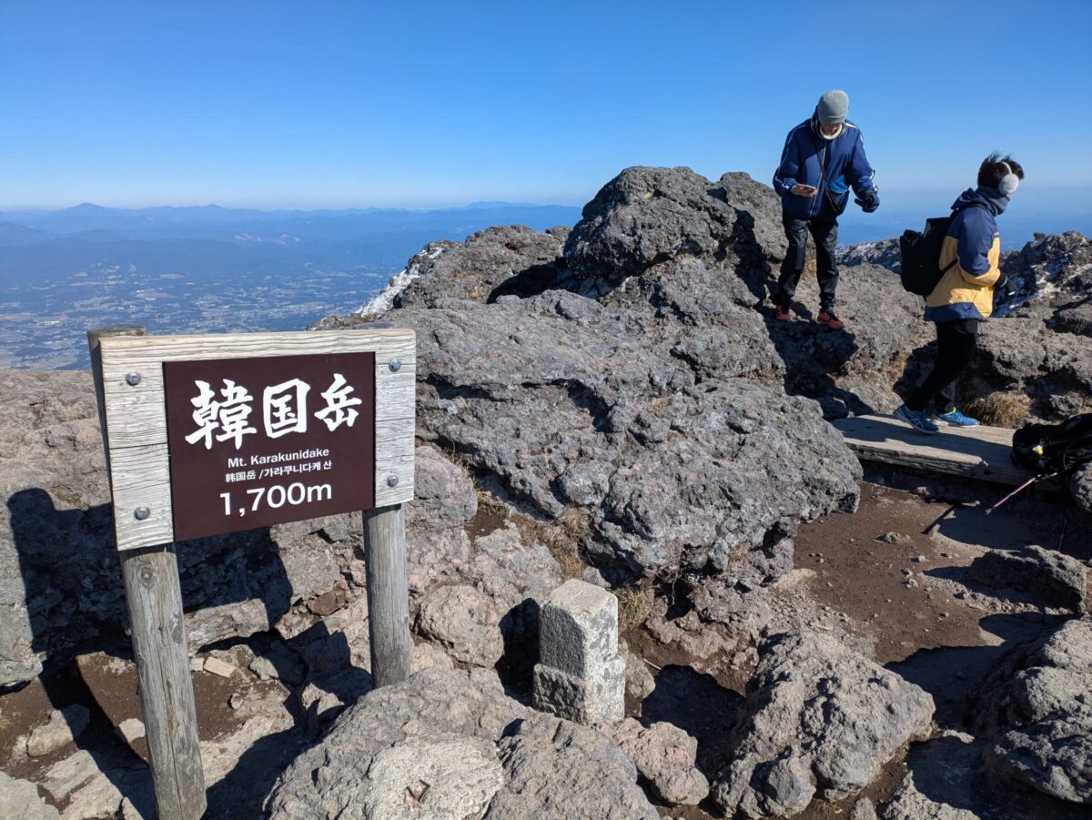 さてさて韓国岳は霧島連山の最高峰にあたり、標高は1,700mとなります。登山口の標高がすでに高く登山者も多いため、体感的には高千穂峰より登りやすいのではないかと感じました。とはいえもちろん冬山ですからね、それなりの装備は必要となります。