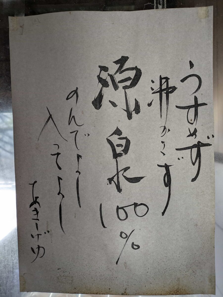 なんというか、ものすごい圧倒的秘湯感です。畑地帯にポツンと佇んでいる姿は一見すると温泉施設には到底見えません。調べたところによると元々は個人所有のものだったとかなんとか。いずれにせよ大当たりでした。