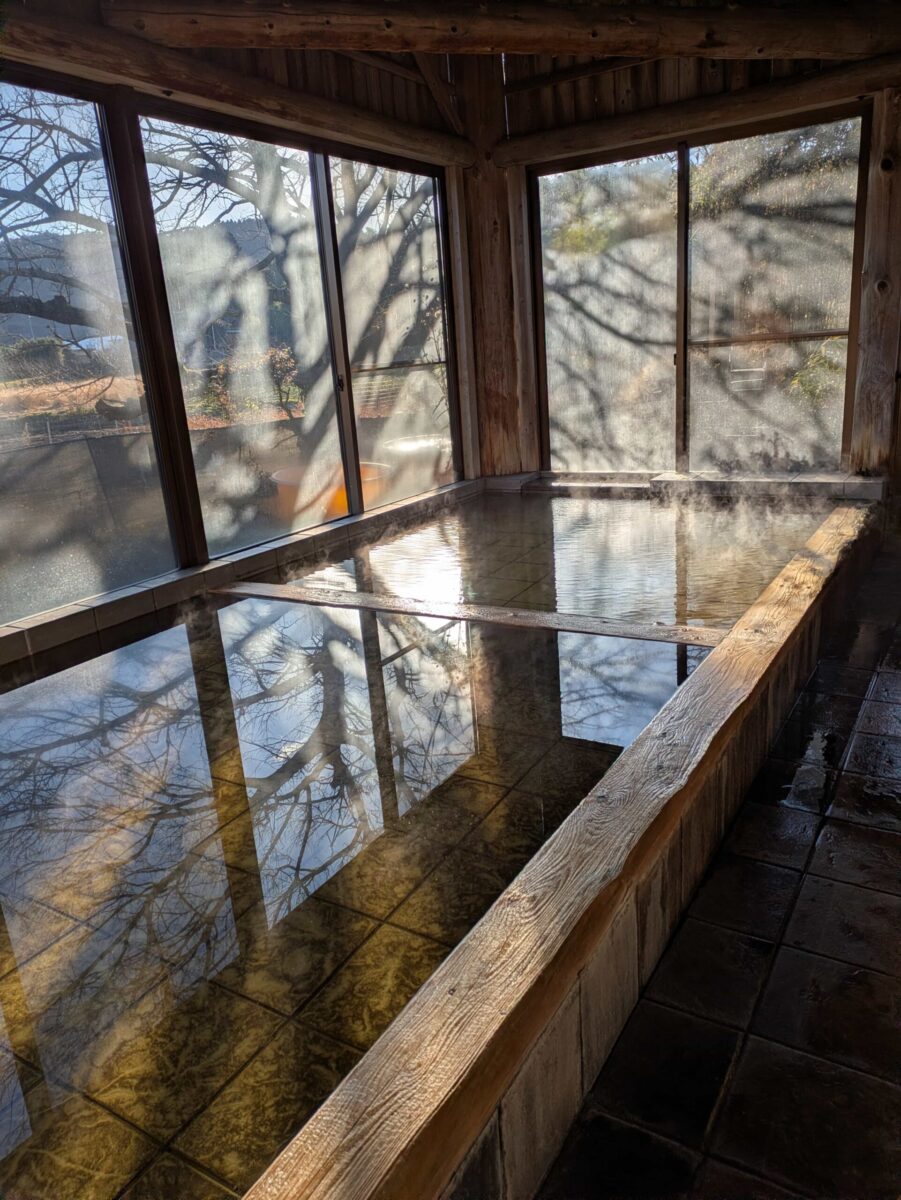 源泉がモール泉?炭酸水素泉?らしく、滑って転びそうなくらい泉質はつるつるぬるぬるです。源泉温度はさほど高くないようで、ゆっくり入っていられます。なお源泉100%なのでなんとそのまま口にすることができるそうです。