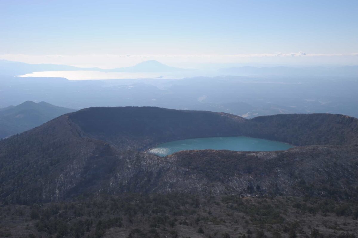 山頂からの景色は圧巻そのものでした。爆裂火口の凄まじさ、つい先ほどまでいた天に突き上げるような高千穂峰、蒸気を上げ続ける新燃岳、大浪池のような火口湖(カルデラ湖ではないらしい)等々。地球ってすげえよ。山頂は大勢の登山者で賑わっており、各々しばらく景色を眺めて過ごしていました。