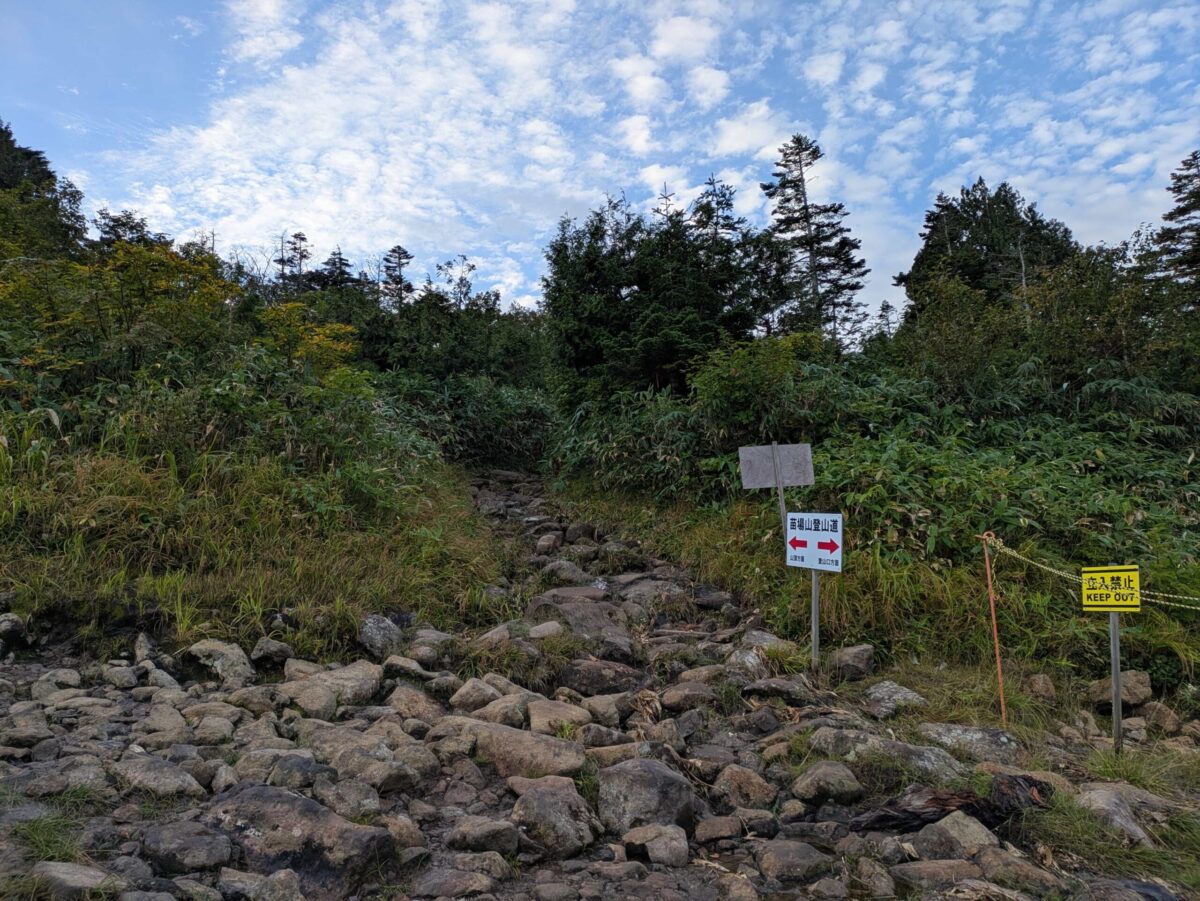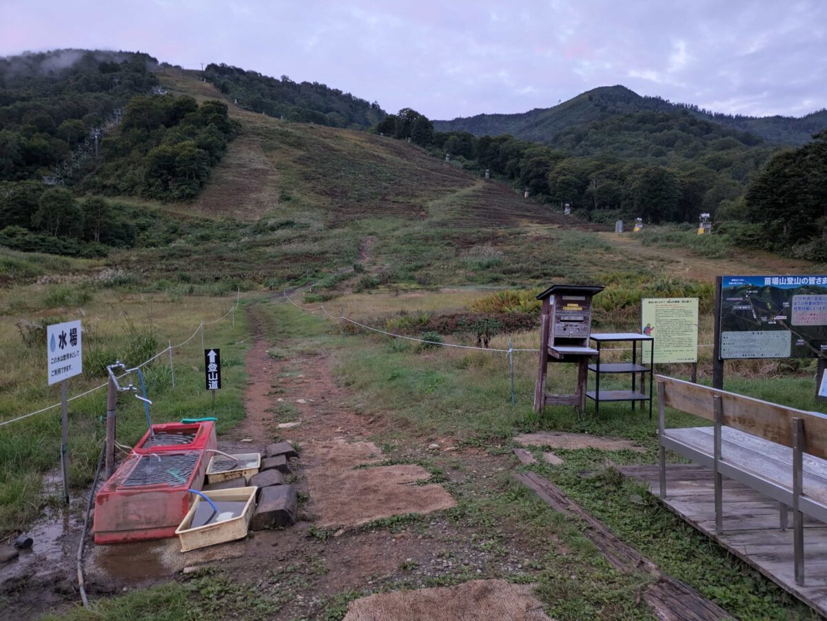 普通に登る方はここで登山届を書き、部分的にスキー場を横切ってからいよいよ登山開始となります。ダートやちょっとした岩場をずんずんと登っていきます。雨量が多いとぐちゃぐちゃだと思います。