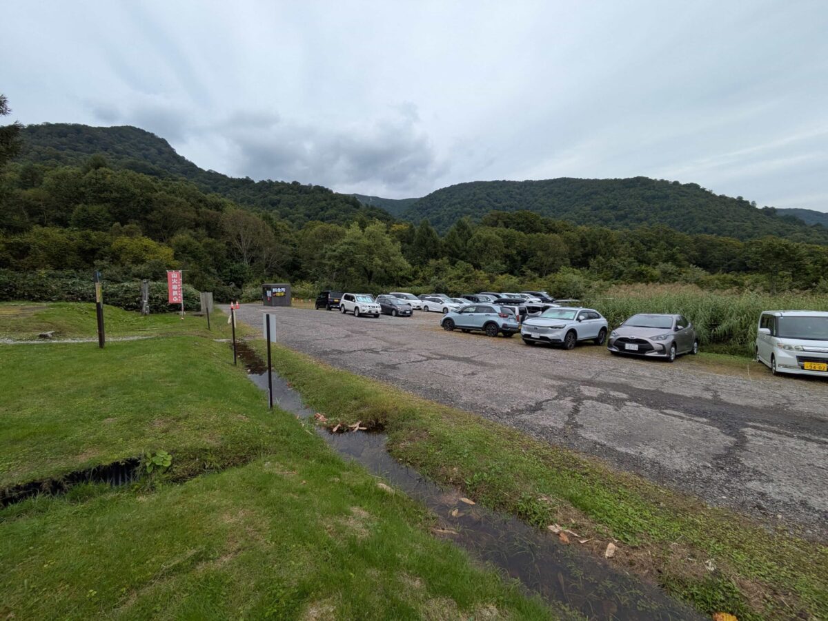 ちなみに祓川登山口駐車場は軽自動車・普通車・二輪車が1,000円、大型車・バスが1,500円となります。おおよそ150台は停められますし、一台一台の駐車スペースが広く取ってあるので安心して停められます。