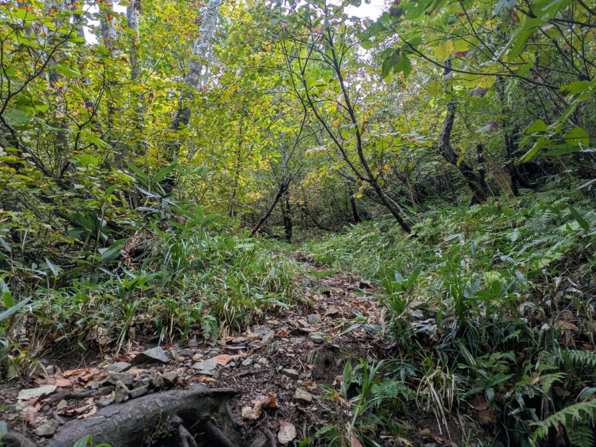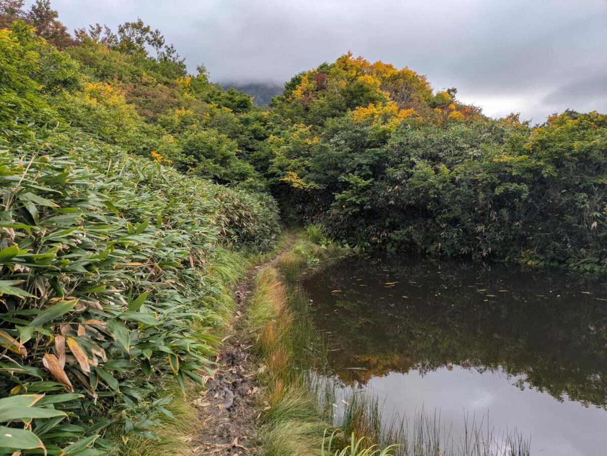 ここから六合目までは緩やかな登山道が続くため、ようやく心と身体を落ち着かせて進むことができます。数個の池塘に加え、生姜畑と言われる鉱山跡地を過ぎます。個人的にはこの辺りが中ノ岳のハイライトでした。とにかく美しいんですよ。