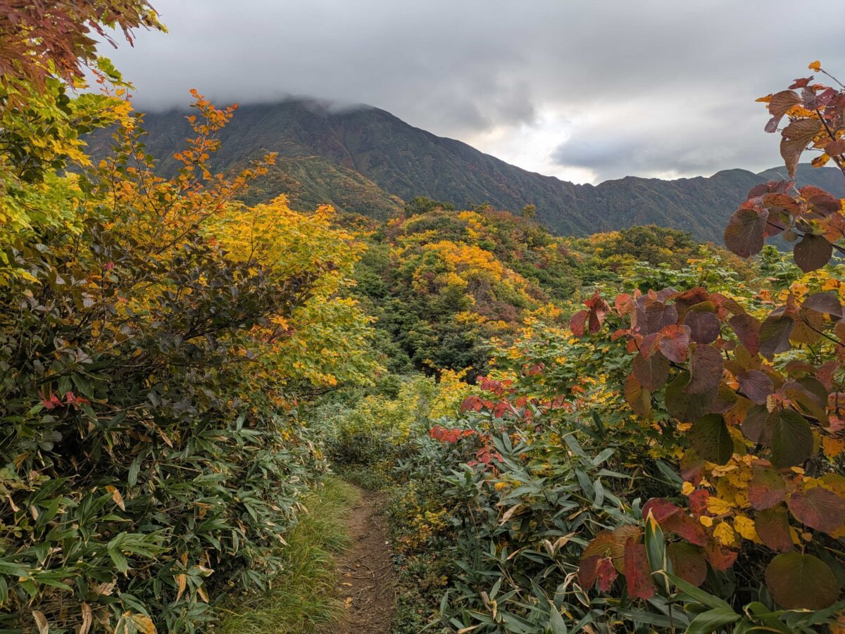 ということで今回は紅葉が進む中ノ岳に登ってきました。3年前に一度訪れたことがありましたが、そのときは丹後山から1泊2日の周回登山であったため中ノ岳は下山で通っただけでした。その際の記憶でも「とんでもない斜度だなあ」「登りで使いたくないなあ」なんて感じた経験があります。